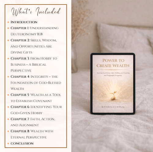 This faith-based eBook explores the biblical meaning of prosperity and reveals that God gives the ability to create, build, and steward resources with purpose. Through Scripture and practical insight, you will discover how your skills, interests, and ideas are intentional gifts placed in your hands to be developed and used for impact.